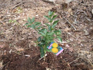 その後柑橘系樹木6本(みかん、デコポン、ハッサク、ネーブル、レモン、ゆず)を植樹しました。これからの成長が楽しみです。