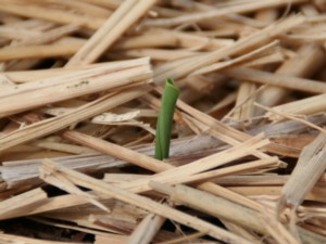 ちょっと不安げだった人参・カブ・水菜ですが、ここ数日の晴天続きで完全にアウトになり、消滅してしまいました。仕方がないので再チャレンジし、今回は乾き対策としてトウモロコシなどで実績のある敷きワラを施してみました。さて、どうなることやら。