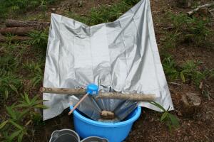 数日前に水やり用にタライを設置し、水を集める工夫をしました。その甲斐あって水深にして10cm弱溜まり、水やりを楽に行うことが出来ました。