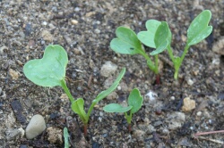 上の写真にもありますが白菜が育っています(でもちょっと小さめ)。また蕎麦・落花生・生姜も収穫目前です。その他、秋植えの大根(写真左)・エンドウ(写真右)・人参の芽が出てきました。