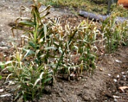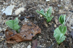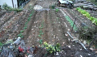 白菜は収穫目前ですが、寒さと虫の食害でちょっと弱り目。立派とはほど遠いですが、そろそろ食べる分から収穫しようかなぁ・・・っと言いつつ、まだ収穫してません。大根・エンドウがちょっと大きくなり、本葉が数枚出ています。大根はそろそろもうちょっとで間引きかな。人参もなんとか本葉っぽいものが出始めました。