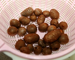 自然薯の収穫の際に拾い集めた零余子(むかご)ですが、来年の種芋用に大きなものを取り除いて保存しても、結構な量のムカゴが残りました。自然薯はおいしく食べているので、その小型版のムカゴもきっとおいしいはず。でも見た目はおいしそうじゃないしアクが強そう・・・。そんなムカゴを、取りあえずムカゴ御飯にしようと、