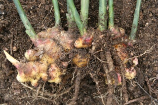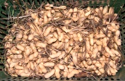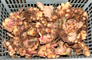 今年は約1.8kgの種ショウガを植え、6.9kgの収穫、内1kg弱は植えたものが復活(?)した土ショウガですから、新生姜は約6kgです。土ショウガは全て復活するはずなのですが、いくつか芽が出なくて腐ってしまったので実際には減ってしまっています。ショウガは保存が難しくて去年は腐らせてしまった分もあったので、今年は土ショウガはお裾分け、新生姜は全て妻に料理してもらう予定です。