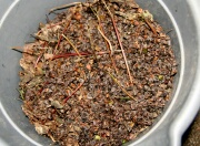 ある程度乾燥したら、皮ごと製粉してふるいに掛けるらしいので、試しに小さなすり鉢で粉にしてみたところ、中から真っ白な蕎麦の粉が出てきました!