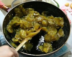 今年は去年の様な変な固さや黒ずみがなく美味しそうな生姜が穫れたので、去年よりもさらに美味しい砂糖煮が出来ました。今まであまり食べなかった妻が、「(我ながら)美味しい」っとどんどん食べるので、あっという間になくなります。独特の甘辛いおいしさで、食べるだけで風邪なんて引かないぞって感じになります。